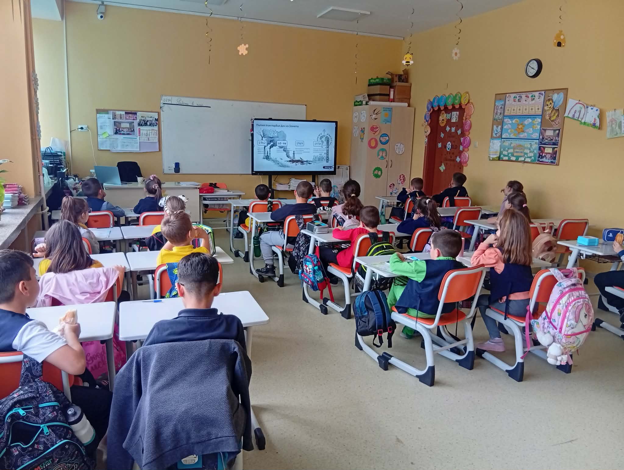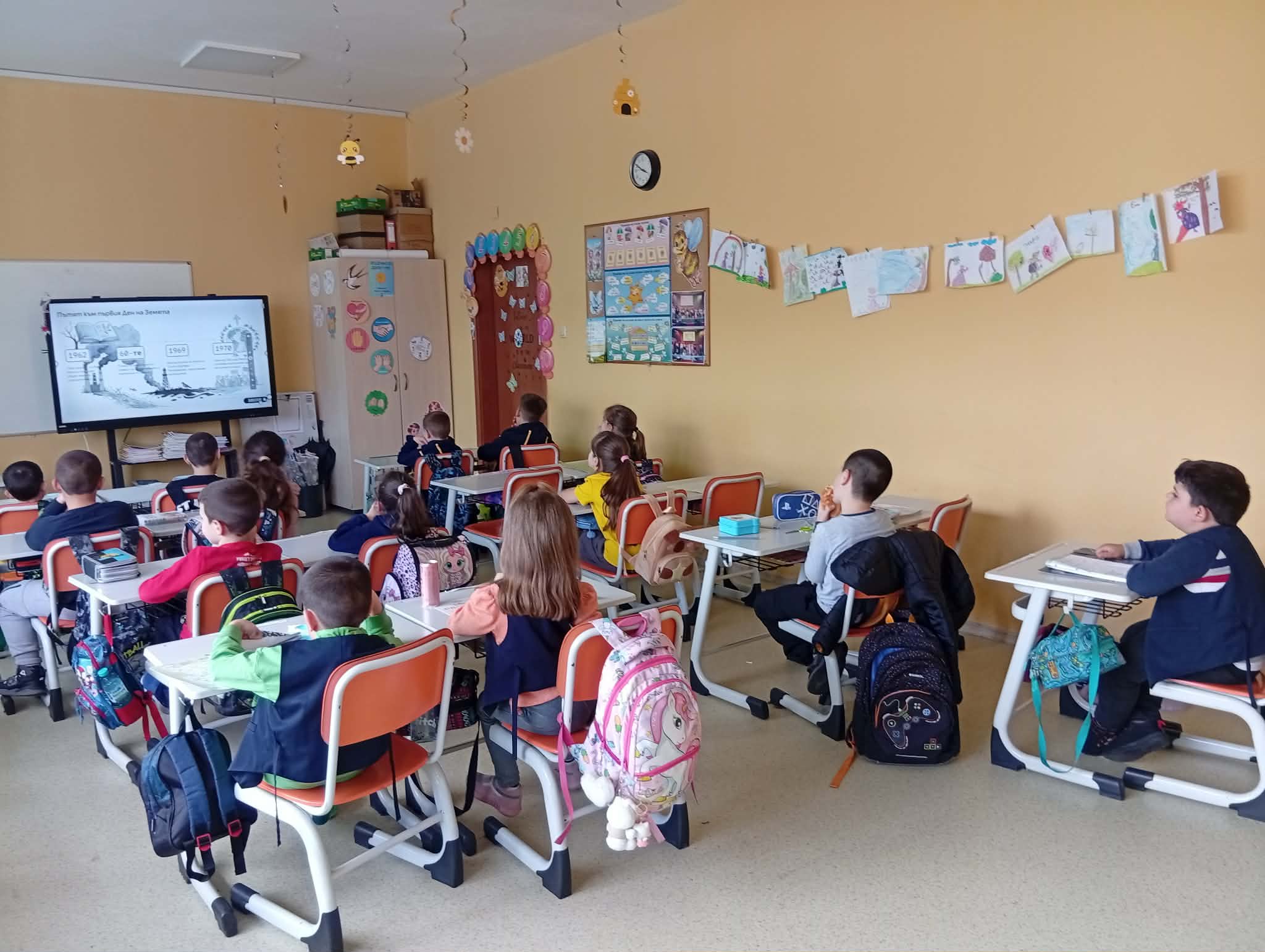 Малките ученици започнаха деня с образователно видео, чрез което научиха колко е важно да пазим природата чиста, да събираме отпадъците разделно и да се грижим за растенията и животните. След това изгледаха интересна презентация, която им помогна да разберат как дори малките действия могат да имат голямо значение за бъдещето на нашата планета.