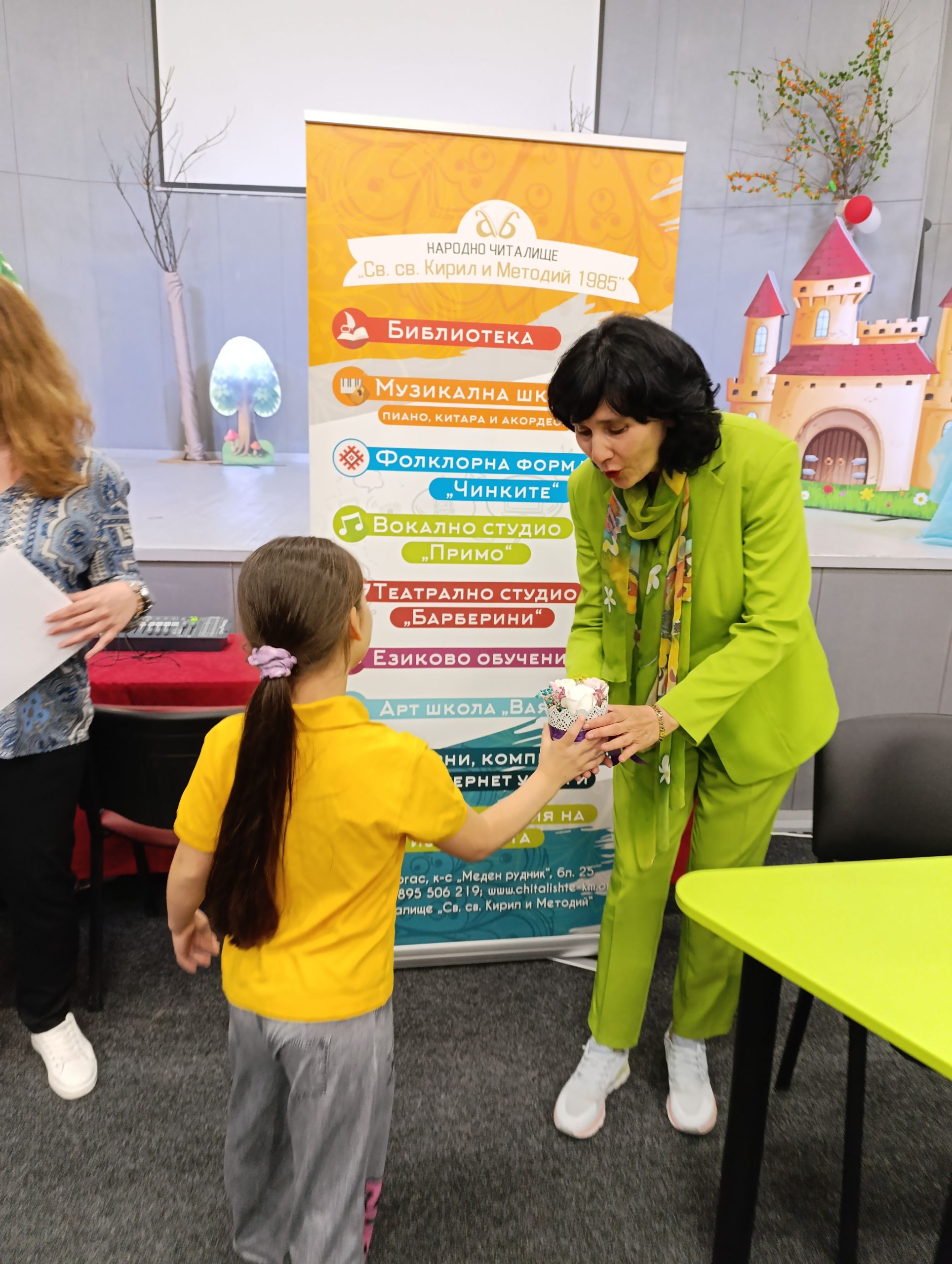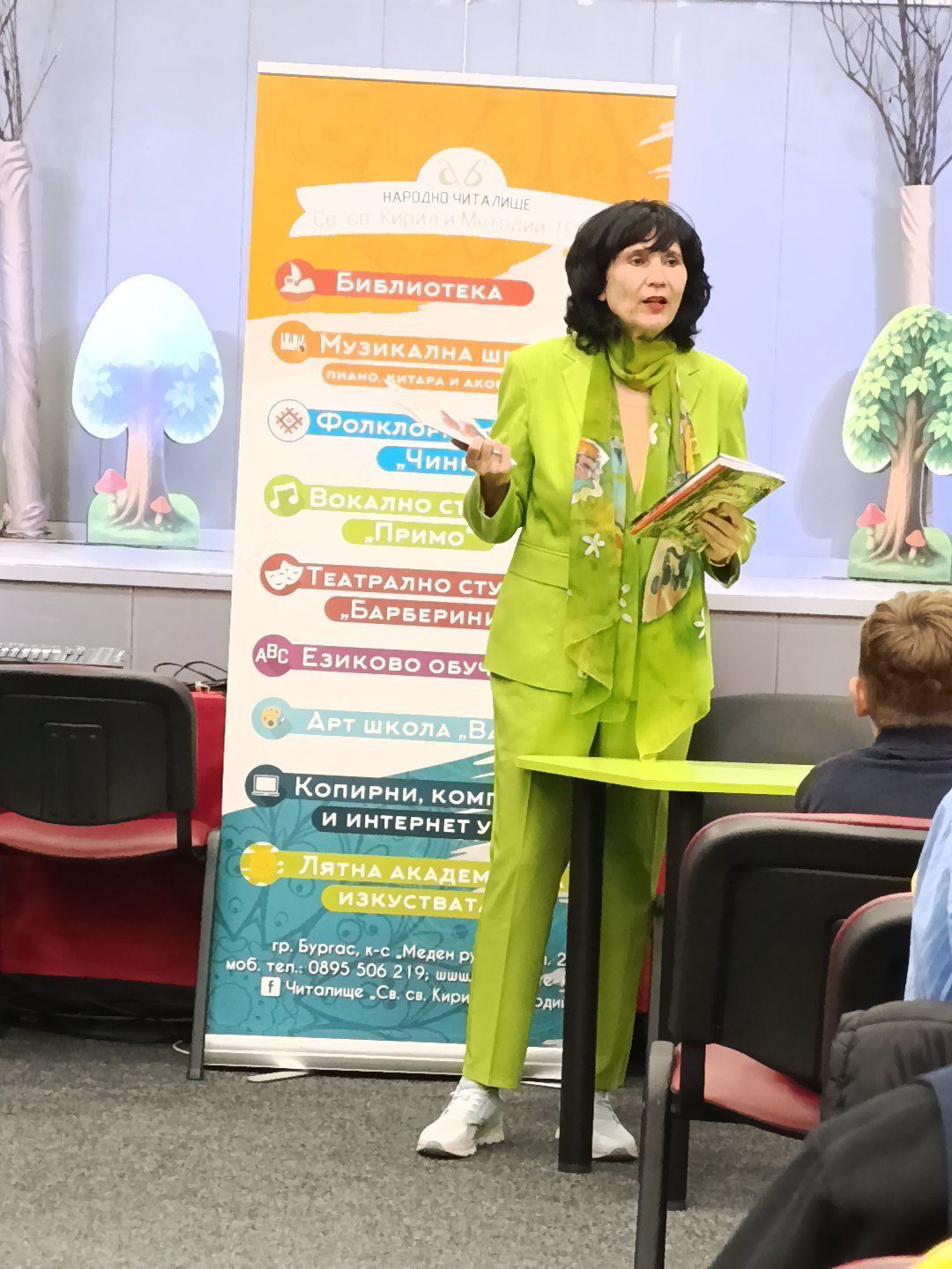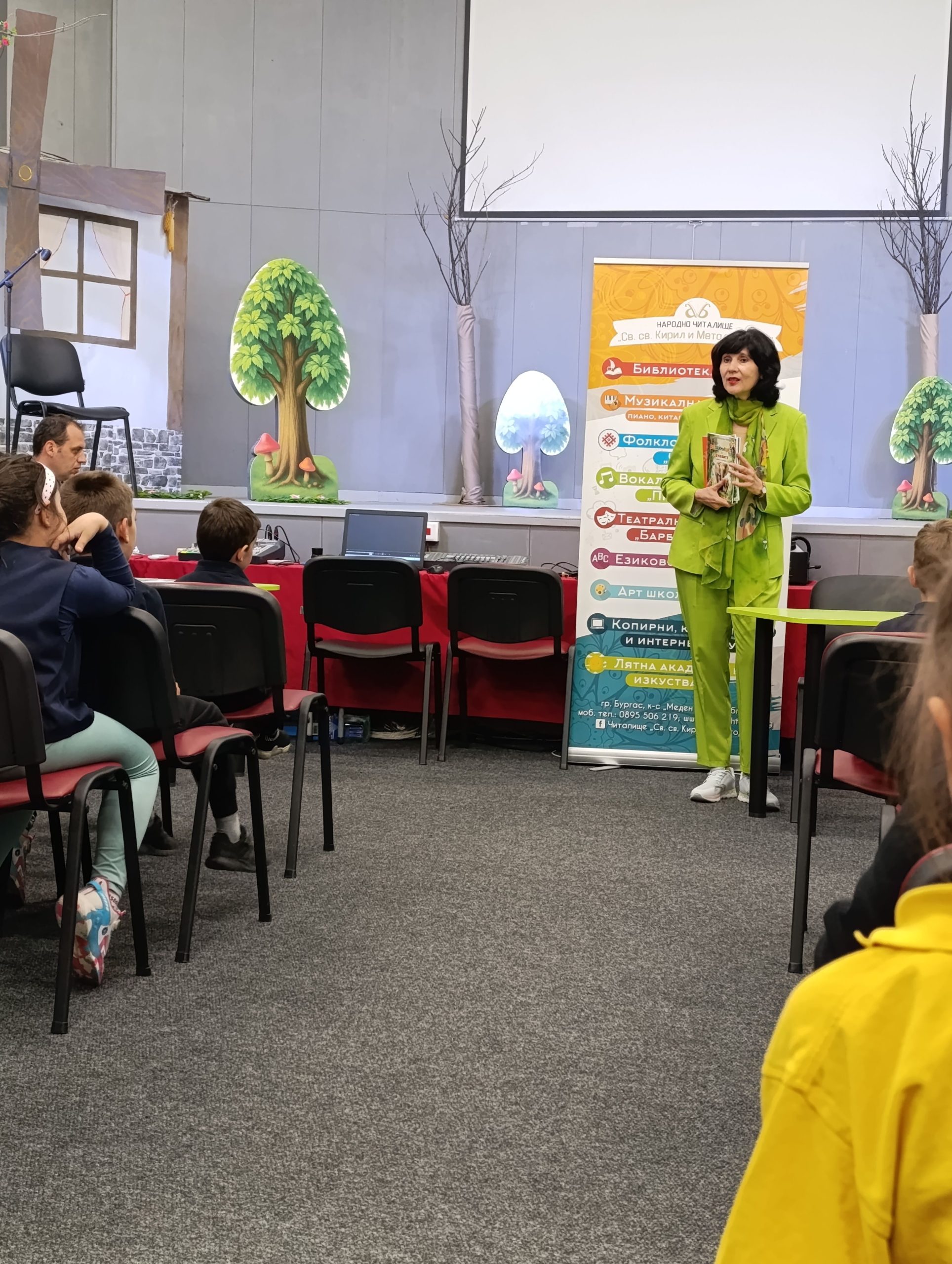 „За дърветата и буквите“, които съчетават поезия, знание и обич към околната среда. Малките ученици слушаха с интерес, активно участваха в разговорите и с радост отговаряха на въпросите на поетесата.