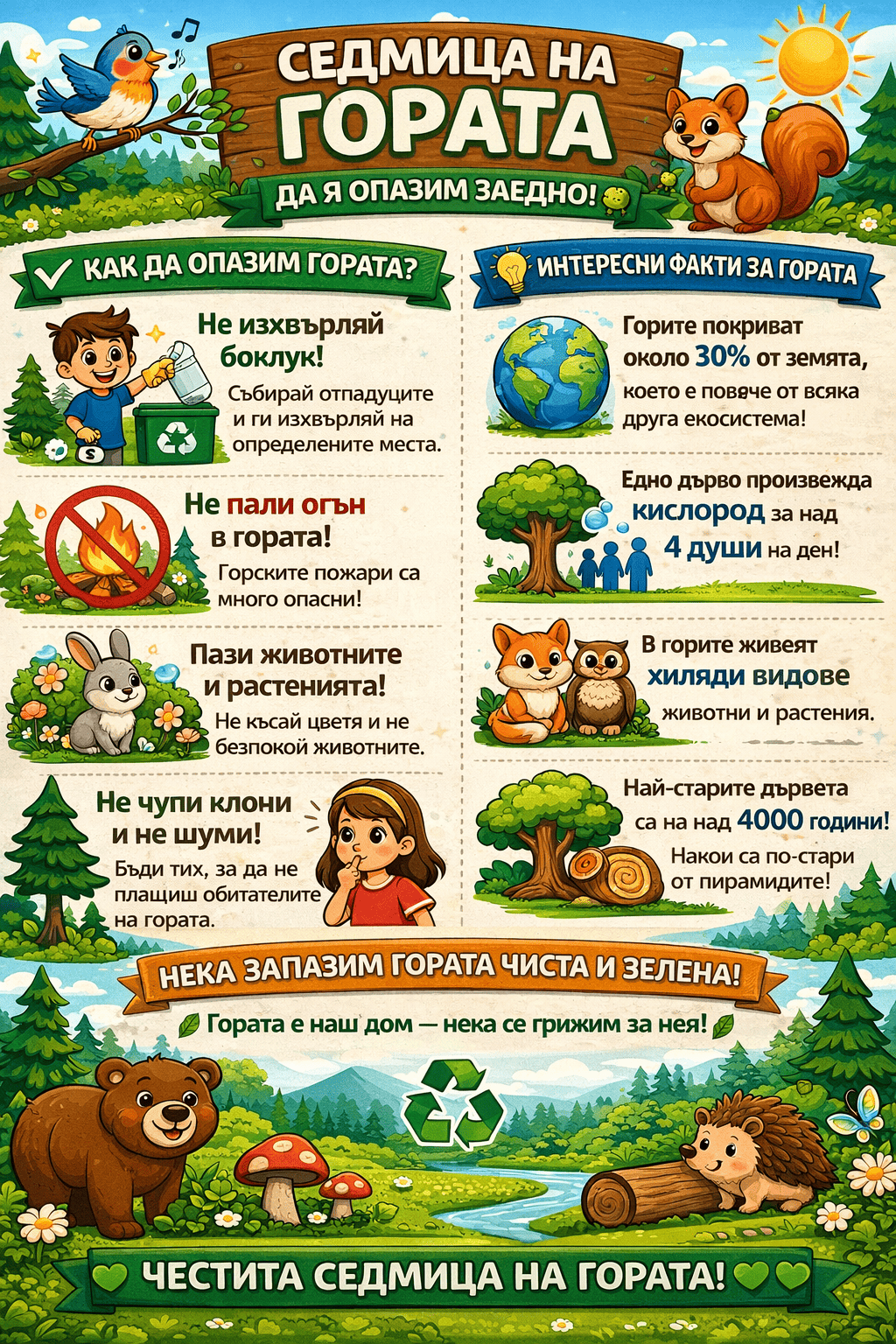 По повод Седмицата на гората учениците от първи клас се включиха в разнообразни образователни и творчески дейности, посветени на природата и нейното опазване.