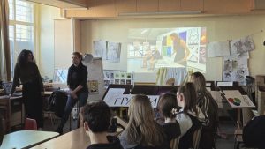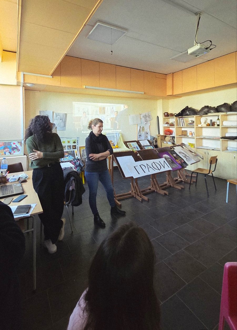 Посещението беше част от информационната кампания на НХА и запозна учениците с подготвителните курсове и консултации за кандидатстване, подаването на документи, програмата за приемните изпити и предстоящия конкурс за рисунка за ученици от 11. и 12. клас.